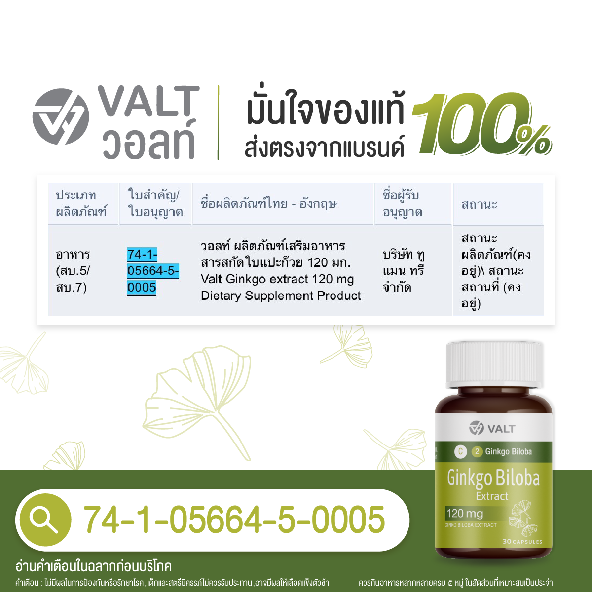 วอลท์ ผลิตภัณฑ์เสริมอาหาร สารสกัดใบแปะก๊วย 30 แคปซูล